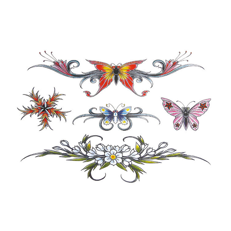 Floral and Butterfly Charm is een betoverend tattoo vel met vijf kleurrijke ontwerpen: drie sierlijke vlinders, een bloemenkrans en een dynamisch, bloemachtig tribal patroon. Deze tijdelijke tattoos blijven ongeveer 3 dagen mooi zichtbaar op de huid en zijn speciaal ontworpen om op te vallen – zonder spijt. Ze zijn eenvoudig aan te brengen met water, huidvriendelijk en veilig in gebruik.