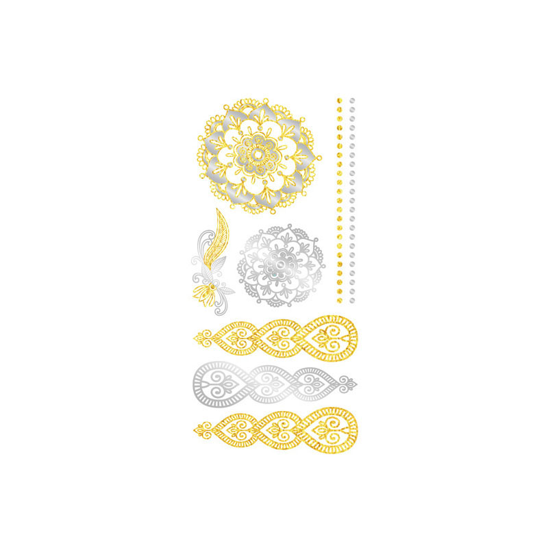De tattoo blijft tot wel 3 dagen zichtbaar en laat zich gemakkelijk aanbrengen met een beetje water. Na 24 uur komt het metallic effect het beste tot zijn recht en lijkt het alsof je een écht gouden of zilveren ornament draagt. Combineer met andere tijdelijke tattoos of draag hem solo voor maximale elegantie.