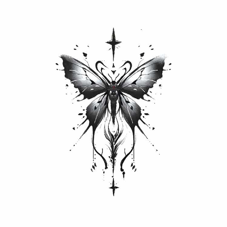 Deze tattoo ademt kracht, duisternis en elegantie. Het is een favoriet onder liefhebbers van symbolische kunst die net iets meer willen dan een simpel vlindertje. Perfect voor festivals, fotoshoots of als stijlvol statement op bijvoorbeeld schouderblad, onderarm of bovenbeen.