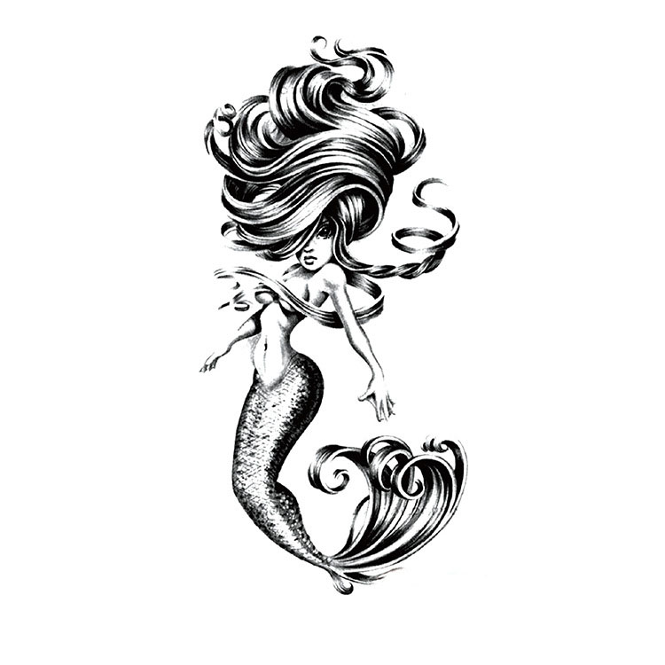 Ocean Muse is een tijdelijke tattoo van 11,4 x 21 cm die de kracht, schoonheid en mystiek van de zee belichaamt. Het ontwerp toont een elegante zeemeermin met weelderig golvend haar dat bijna hypnotiserend lijkt. Haar lichaam is sierlijk en haar blik doordringend — een vrouwelijk icoon met een vleugje verleiding.