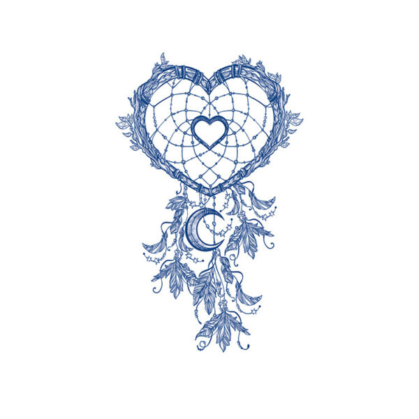Sacred Dreams is een tijdelijke tattoo die je direct meeneemt naar een wereld van mystiek, liefde en bescherming. Het hartvormige web symboliseert het vangen van mooie dromen en het loslaten van negatieve gedachten. Binnenin het hart vind je een klein tweede hart — het centrum van verbinding en zuiverheid.