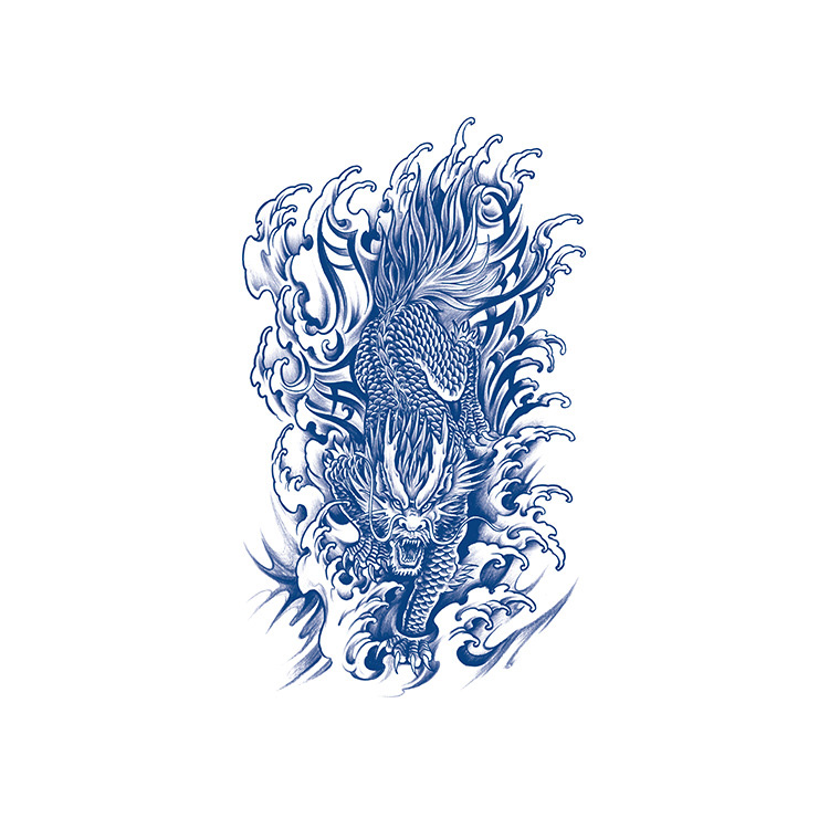 De tijdelijke Tidal Dragon Wrath tattoo dringt door tot de bovenste huidlaag. Hierdoor heeft water geen invloed op de kwaliteit of uitstraling.