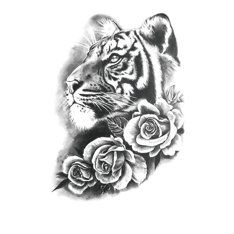 Tiger Bloom is een indrukwekkende tijdelijke tattoo voor wie kracht en schoonheid wil combineren. Op het tattoo vel van 14,8 x 21 cm staat een prachtig realistisch ontwerp van een stoere tijger, omlijst door weelderige rozen. De tattoo zelf is iets kleiner dan het vel en valt perfect op de bovenarm, schouder, rug of dij.