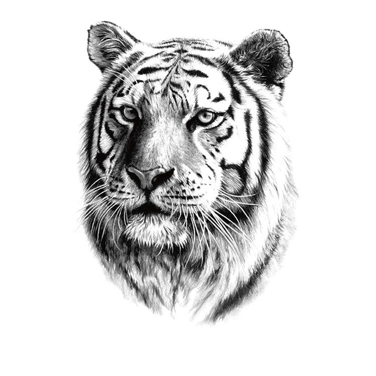 Met Tiger Soul breng je de majestueuze kracht en het innerlijke vuur van de tijger tot leven op je huid. Deze tijdelijke tattoo toont het realistische portret van een tijger in zwart-wit, met een intense blik die zowel rust als dominantie uitstraalt. De illustratie is haarscherp, met indrukwekkende details in vachtstructuur, snorharen en schaduwval – een waar kunstwerk.