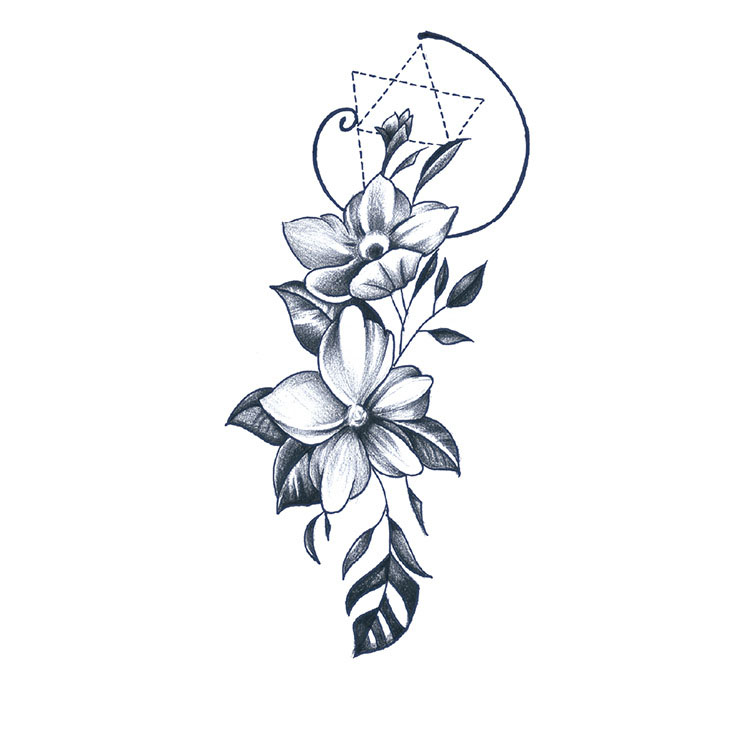 Whispering Petals is een elegante 3 dagen tattoo met realistische bloemen en geometrische lijnen in zwart-grijze stijl. De verticale vorm laat zich perfect dragen op arm of been. De combinatie van natuurlijke zachtheid en subtiele symboliek maakt dit ontwerp tijdloos, stijlvol en krachtig zonder te overheersen. Een verfijnde blikvanger met rustige uitstraling.